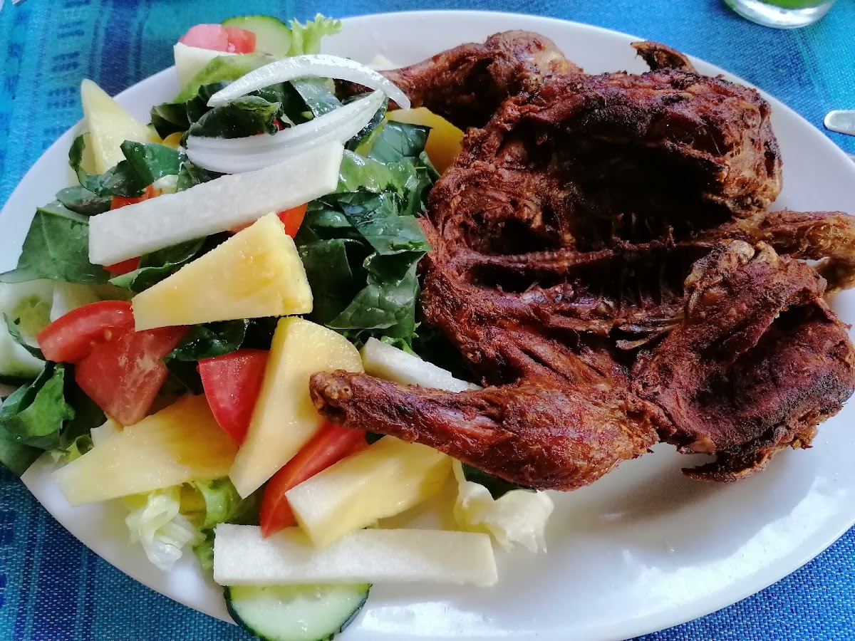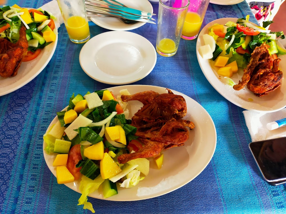 Pollos Tiernos Con Ensalada Tropical